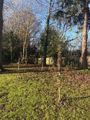 The three Crab Apple trees and one Rowen tree planted in Autumn 2024 now appear well established, thanks in part to several local residents who regularly watered them during the dry spells. The new mixed hedging along the park boundary has also taken well, though a few plants were lost due to extreme weather.